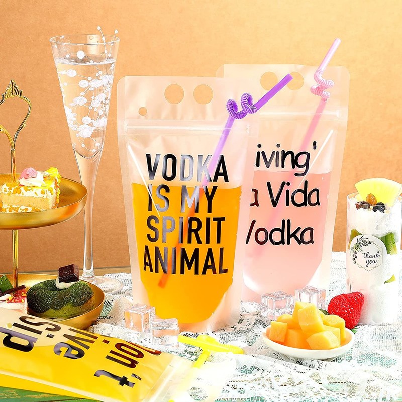 Drink Pouches With Straws Plastic Drink Bags With Zipper Party Beverage Bags Novelty Funny Juice Pouches